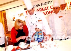 為宣傳即將在4月舉辦的"第12屆全港廚師精英大匯演",城中多位名廚18日在君悅酒店與協(xié)康會小朋友一起參與別開生面的廚藝比賽。洪少葵 攝