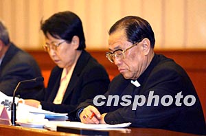 全國人大常委會副委員長傅鐵山,十九日在北京出席十屆全國人大常委會一次會議。作者:滿會喬