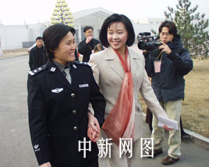 上午十時(shí)左右,身著米色套裙、白色皮鞋的滕春燕從位于北京大興的一所監(jiān)獄中走出來的時(shí)侯,與緊隨其后的兩位女警員相擁告別。面對(duì)早已等候在大門外的十多位中外記者,滕春燕興奮地說:“我現(xiàn)在的心情非常好!睘榻优畠撼霆z,滕春燕的父親滕玉本專程自外地來到北京。