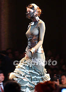 中國上海的楊智推出《鐵甲柔情》服飾系列,以皮革甲胄烘托走向戰(zhàn)場的女性軀體,三月二十五日在北京舉行的“漢帛杯”國際青年時裝設(shè)計(jì)師作品大賽上獲得一項(xiàng)最佳獎和銅獎。作者:賈國榮