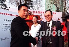 香港拼牌集團(tuán)服飾公司二十五日在北京舉行2003年中國散打王爭霸賽冠名儀式,以進(jìn)一步開發(fā)中國大陸服裝市場。圖為公司董事長柯夏鳴先生(左)與主辦單位代表揚(yáng)富年先生在簽約儀式上。作者:武仲林