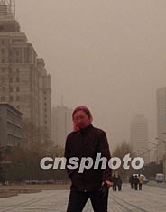 二十六日上午,長(zhǎng)春市還是陽(yáng)光明媚,下午忽然“天公變臉”。市區(qū)天空一片暗黃,路人不得不用口罩、帽子、紗巾等將頭部“武裝”起來,在風(fēng)沙中低頭疾行。作者:韓丹