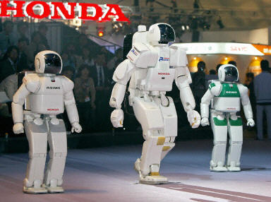 日本本田公司研制的新型機器人P-3 and Asimo在4月2日的橫濱2003機器人展上亮相。