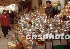 春季的新疆喀什出售各種金屬水具的市場(chǎng)一派繁榮,這里的維吾爾族人一直保持著用水壺洗手習(xí)慣。作者:宋吉河