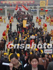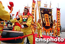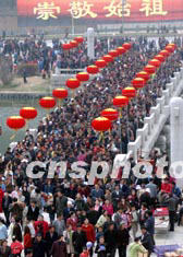 中新社鄭州四月五日電(胡珂張坤)四月五日上午,二00三中國新鄭“炎黃文化旅游節(jié)”拜祖大典在新鄭市始祖山軒轅廟前隆重舉行。來自日本、韓國、馬來西亞、美國、香港、臺灣等十多個(gè)國家和地區(qū)的華人華僑在這里焚香跪拜,尋根祭祖。