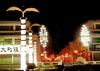 在安陽的中心大道上,記者看到,三三兩兩的市民或游人正悠閑地散步,路燈把街道照得亮如白晝,白天雄偉的建筑在燈光的襯托下也顯得那么溫柔,人行道邊形狀、種類各異的花、樹為你增添了些許清新,花草叢中的低低的發(fā)著幽光的壇燈又為你增添些許浪漫。