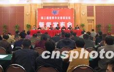 “第二屆世界華文傳媒論壇”將于今年九月二十二日至二十四日在湖南長沙召開。四月十日,主辦單位中國新聞社、長沙市人民政府和湖南省外事僑務辦公室共同在長沙舉行新聞發(fā)布會。圖為新聞發(fā)布會會場。作者:白祖偕