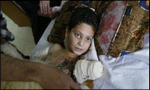 中新網(wǎng)4月14日電 巴格達(dá)城醫(yī)院的護(hù)士寫信請(qǐng)求布什和布萊爾立即將12歲的斷臂孤兒阿巴斯空運(yùn)出伊拉克、接受專家治療,否則阿巴斯生死難測(cè)。