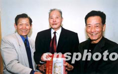 金門陳氏宗親會(huì)理事長陳添丁(左一)四月十四日在廈門接受廣東汕尾市陳氏的族譜,該族譜對(duì)臺(tái)灣陳氏幾百年的歷史有詳細(xì)描述。作者:陳勇