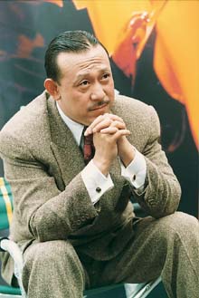 一身老克勒打扮的姜文,從《茉莉花開》拍攝現(xiàn)場忙里偷閑,溜到上影廠小露臺接受采訪,為電影《綠茶》做宣傳。說話中途偶爾接個電話,紫色吊帶的手機,翻蓋上忽隱忽現(xiàn)一小方卡通粘紙,電話是趙薇打來的,姜文喚她“薇姐”。
