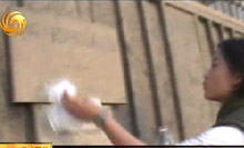 中國(guó)駐伊拉克大使館遭到暴徒兩度搶掠一空,香港鳳凰衛(wèi)視女記者隗靜星期二(15日)到大使館內(nèi),看到劫后的使館滿(mǎn)目瘡痍。隗靜已將兩面遭掠后留在地面上的中國(guó)國(guó)旗收好,準(zhǔn)備轉(zhuǎn)交給中國(guó)外交部,她更用僅有的半瓶礦泉水,將大使館門(mén)前的黃銅門(mén)牌擦拭干凈。