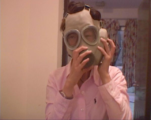 閭丘露薇在伊拉克試戴防毒面具