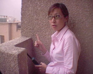 閭丘躲在樓頂角落為總部作聯(lián)線報道