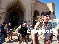 4月16日,美軍伊拉克戰(zhàn)場(chǎng)總指揮弗蘭克斯將軍(右)走訪了戰(zhàn)后的伊拉克首都巴格達(dá),視察美軍的部署情況。Ic/cnsphoto 攝