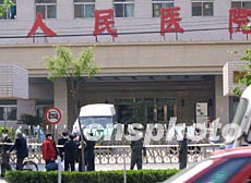 北京人民醫(yī)院二十四日上午作為首批受非典性肺炎污染的醫(yī)院,成為首批被隔離的區(qū)域。作者:滿會(huì)喬