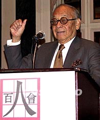 八十六歲高齡并已很少在公開(kāi)場(chǎng)合露面的美國(guó)著名華裔建筑師貝聿銘,四月二十四日在紐約出席美國(guó)百人會(huì)第十二屆年會(huì),并作為百人會(huì)創(chuàng)始人在開(kāi)幕式上發(fā)表演講。作者:趙海燕