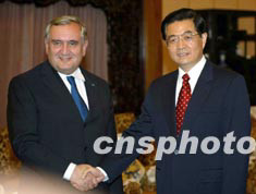 胡錦濤會(huì)見(jiàn)拉法蘭 強(qiáng)調(diào)加強(qiáng)與歐盟對(duì)話經(jīng)貿(mào)交流