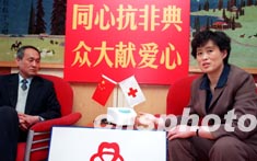 廣州本田汽車有限公司總經(jīng)理門脅轟二代表公司3800多名員工把100萬元人民幣的支票交給了廣州市紅十字會,這筆捐款將用于防治非典型肺炎研究的專項基金。