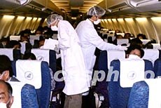 廣州四月底加強(qiáng)口岸防治“非典”力度,白云機(jī)場(chǎng)向入境旅客發(fā)放“入境健康申明卡”。作者:白云