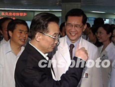 隨后,溫家寶來到廣東省人民醫(yī)院看望了醫(yī)務(wù)人員。他說,廣大醫(yī)務(wù)工作者在這次抗擊“非典”的斗爭中做出了重大貢獻。他們臨危不懼,舍生忘死,無私奉獻,救死扶傷,表現(xiàn)出高尚的革命情操和人道主義精神。祖國和人民是不會忘記的。他要求各級政府要格外關(guān)心醫(yī)務(wù)人員的身心健康,要進一步改善他們的工作和生活條件,大力宣傳他們的先進事跡。