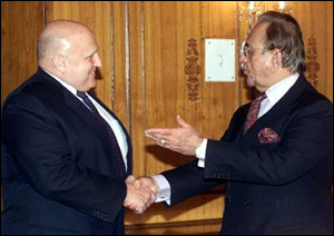 據(jù)悉,阿米蒂奇8日與巴基斯坦總統(tǒng)穆沙拉夫、總理賈邁利、外長(zhǎng)卡蘇里等人舉行了會(huì)談。會(huì)談中,巴美雙方主要討論了雙邊關(guān)系、巴印關(guān)系、克什米爾問題、阿富汗問題和反恐問題等。阿米蒂奇在會(huì)談中希望巴基斯坦和印度能進(jìn)一步消除兩國(guó)間的分歧。