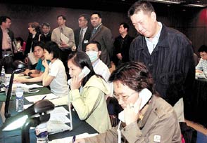 記者晚上在澳門非典型肺炎應(yīng)變小組所在地旅游中心看到,隨著首例非典個(gè)案的出現(xiàn),各部門已經(jīng)進(jìn)入戰(zhàn)時(shí)狀態(tài),包括社會(huì)文化司司長(zhǎng)、衛(wèi)生局局長(zhǎng)在內(nèi)的各部門工作人員已經(jīng)進(jìn)駐,二十條熱線電話也已緊急啟動(dòng)。