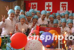 北京友誼醫(yī)院的白衣天使們十二日在院內(nèi)歡度護(hù)士節(jié)。迄今為止,北京友誼醫(yī)院已先后向抗擊“非典”一線派出兩批共計(jì)一百三十多名醫(yī)務(wù)工作者。中新社記者:武仲林