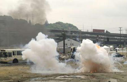 整個演習(xí)的腳本總共200頁,具有好萊塢大片的風(fēng)格,有數(shù)千人參加此次演習(xí)。數(shù)百名警察與消防隊員在一座工業(yè)倉庫參加這次演習(xí)。隨著一聲巨響,模擬受害者將滿身是血地倒下或者被埋在仿制的廢墟下,而警察與消防隊員及時趕到救護(hù)他們。
