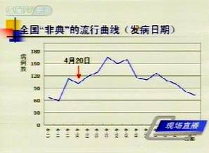 衛(wèi)生部疫情分析專家徐德忠:我們看一下今天的疫情,今天全國新增的診斷病例是80個(gè),但是比高峰日要下降60%。我今天分析兩個(gè)問題:第一個(gè)問題是全國非典流行的疫情在我們采取措施以后呈波動(dòng)地下降,證明措施是有效的;第二我們要警惕疫情向農(nóng)村擴(kuò)散。