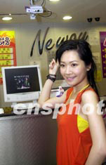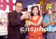 歌星關(guān)心妍5月14日出席在香港尖東Neway卡拉OK舉行新歌祝捷會。熱情的歌迷除送上鮮花外,更別出心栽送上皇冠頭飾。中新社傳真 鄧慶樂 攝