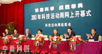 中國(guó)科學(xué)技術(shù)部部長(zhǎng)徐冠華在開(kāi)幕式上說(shuō),將努力把本屆科技活動(dòng)周辦成科技界和廣大人民群眾齊心協(xié)力、共抗“非典”的重要陣地,成為阻擊“非典”蔓延、安定社會(huì)人心的穩(wěn)固防線,成為與各種愚昧迷信活動(dòng)、與各種蠱惑人心的謠言做堅(jiān)決斗爭(zhēng)的前沿戰(zhàn)場(chǎng)。