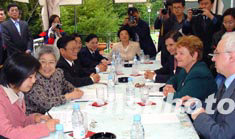 中國國務(wù)院副總理兼衛(wèi)生部長吳儀十八日在日內(nèi)瓦會見世界衛(wèi)生組織總干事布倫特蘭。作者:蔚中