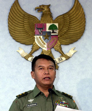 印尼總統(tǒng)軍事秘書哈桑努丁少將宣讀由梅加瓦蒂總統(tǒng)簽署的總統(tǒng)令決定,從19日凌晨零點開始在印尼最西部的亞齊省實施戒嚴令。