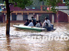 五月中旬,湖南湘江在連日大雨后水位猛漲,十八日全線超過警戒水位,位于中游的長(zhǎng)沙橘子洲立即成為水鄉(xiāng)澤國(guó)。雖然此前洲上大部分居民在政府的幫助下已經(jīng)搬遷,但洪水仍給少數(shù)未能搬遷的居民造成不便,他們只能通過船只進(jìn)出家園。作者:白祖偕