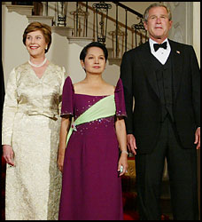 阿羅約目前正在美國(guó)進(jìn)行國(guó)事訪問(wèn),她是布什上任以來(lái)第一位對(duì)美進(jìn)行國(guó)事訪問(wèn)的亞洲國(guó)家領(lǐng)導(dǎo)人。