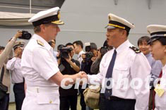 中新社上海五月二十四日電 英國(guó)皇家海軍“利物浦號(hào)”驅(qū)逐艦在英國(guó)海軍司令大衛(wèi)尼爾森的帶領(lǐng)下,今天首次訪問(wèn)上海。