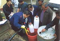 記者于5月11日乘汽車進(jìn)入天津市區(qū)時(shí),在金鐘路收費(fèi)站接受了紅外線體溫監(jiān)測(cè)器的測(cè)試,而所乘車輛也被噴灑了過(guò)氧乙酸消毒液。工作人員告訴記者,凡是來(lái)往車輛都要接受消毒,乘客必須接受體溫測(cè)試。而對(duì)于來(lái)自北京、河北、內(nèi)蒙、山西等疫區(qū)的人員還要接受重點(diǎn)檢查。根據(jù)天津市交通局的介紹,在天津的32個(gè)車站和23個(gè)高速公路出口都配備有相似的檢查站。而當(dāng)記者進(jìn)入市區(qū),在入住酒店之前,還被要求填寫(xiě)了健康登記表,并又一次接受了體溫檢測(cè)。