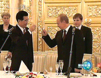 普京指出,胡錦濤擔任中國國家主席后首次出訪的第一站就是俄羅斯,再次體現(xiàn)出中方領(lǐng)導(dǎo)人對發(fā)展兩國關(guān)系的重視。剛剛進行的會談內(nèi)容十分豐富且富有成效,對雙方都有益處。