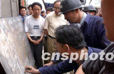5月28日,發(fā)生透水事故的河南安陽安利煤礦現(xiàn)場(chǎng),剛剛從井下上來的礦工正在向地面工作人員講述救援工作進(jìn)度。該煤礦自5月24日透水事故發(fā)生以來,救援工作一直在緊張地進(jìn)行中。至5月28日上午,搶險(xiǎn)工作又向前推進(jìn)25米,距離出事地點(diǎn)剩下130余米,礦井涌水正常。目前扇風(fēng)筒已接近最前沿施工地點(diǎn),以保證井下氧氣濃度達(dá)到正常水平。作者:慎重