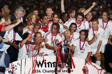 中新網(wǎng)5月29日電 在北京時間今天凌晨進(jìn)行的歐洲冠軍聯(lián)賽決賽中,意大利的AC米蘭隊(duì)在點(diǎn)球大戰(zhàn)中擊敗了意大利兄弟球隊(duì)尤文圖斯,登上了歐洲足球的最高峰。賽后,俱樂部主席、意大利總理貝魯斯科尼表揚(yáng)了隊(duì)中球星們的出色表現(xiàn)。
