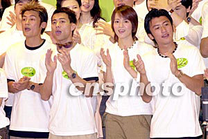 眾歌星5月30日在香港電臺出席「心連心全城抗炎大行動(dòng)」主題曲「香港再起飛」錄音,歌星余文樂、梁漢文、梁詠琪、謝霆鋒高唱「香港再起飛」。鄧慶樂 攝