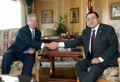 中新網(wǎng)6月3日電 美國總統(tǒng)布什3日抵達埃及位于紅海海濱的度假勝地沙姆沙伊赫,與埃及總統(tǒng)穆巴拉克舉行會談。他們將參加有關(guān)中東和平的首腦會議。