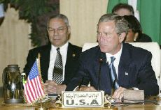 今天,阿拉伯國家和美國首腦會議在埃及紅海旅游城市沙姆沙伊赫舉行。布什在會上作上述表示。