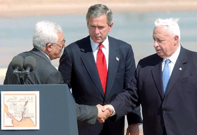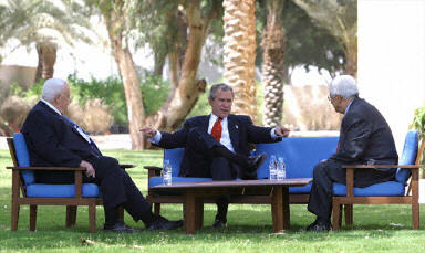 布什主持了巴勒斯坦自治政府總理阿巴斯與以色列總理沙龍之間的峰會,隨后結(jié)束就任總統(tǒng)兩年半來首次親自到中東進行謀和的訪問。