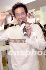 影視紅星陳豪6月5日在香港出席法國化妝品牌「萊莉雅」專門店開幕儀式,陳豪于店內(nèi)找到合適的染發(fā)色樣。 中新社記者 鄧慶樂