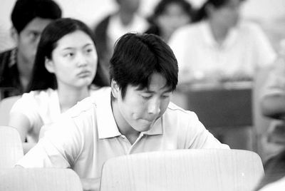 8點(diǎn)50分,考官開始宣講考場(chǎng)紀(jì)律,顯然考生中有祁宏的熟人,他邊點(diǎn)頭打招呼,邊笑嘻嘻地把書包放到較遠(yuǎn)的座椅上。其他考生也先后收好復(fù)習(xí)卷、參考書,迅速安靜了下來。考試兩小時(shí)后結(jié)束,答完考卷的考生們議論紛紛地走出了考場(chǎng)。