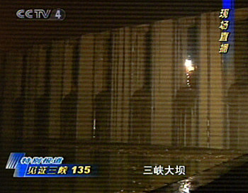 水位達至135米的三峽大壩。(中央電視臺圖)