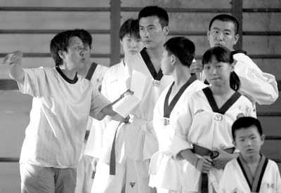 一大早,記者就趕到什剎海體校。道館外,一幫跆拳道館的學(xué)員們早已換好了行頭,等著他們的“同學(xué)”柳云龍的到來。盡管演員們還沒有來到現(xiàn)場,可是跆拳道館內(nèi)攝影、燈光、錄音等幕后工作人員卻已經(jīng)把一切準(zhǔn)備工作完成。可能是幾天來的勞頓,大家都休息不好,場邊的椅子上一個(gè)小伙子睡著了。劇組周小姐說:“我們今晚還要忙到夜里一點(diǎn)。”雖然這幾天非典疫情已經(jīng)得到控制,但是劇組為了防患于未然,還是立下了一個(gè)規(guī)矩:拍攝時(shí),現(xiàn)場不得超過50人,而此前所有的人在進(jìn)學(xué)校大門時(shí)已經(jīng)測過了體溫。