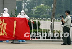 解放軍小湯山醫(yī)院將在20日送走最后一批SARS康復(fù)患者后結(jié)束光榮使命,18日軍方攝影師在隔離區(qū)認(rèn)真記錄該醫(yī)院的最后時(shí)刻。中新社記者:任晨鳴