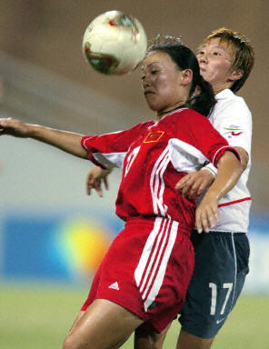 在十九日晚間于曼谷進(jìn)行的一場女足亞洲杯的半決賽中,憑借著白潔的梅開二度和孫雯的錦上添花,中國女足以三比一力克韓國隊,順利進(jìn)軍決賽。